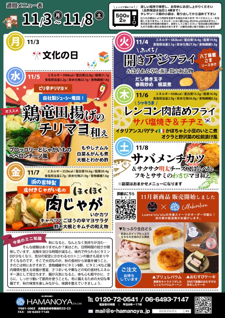 11月3日~11月8日のメニューを掲載しました