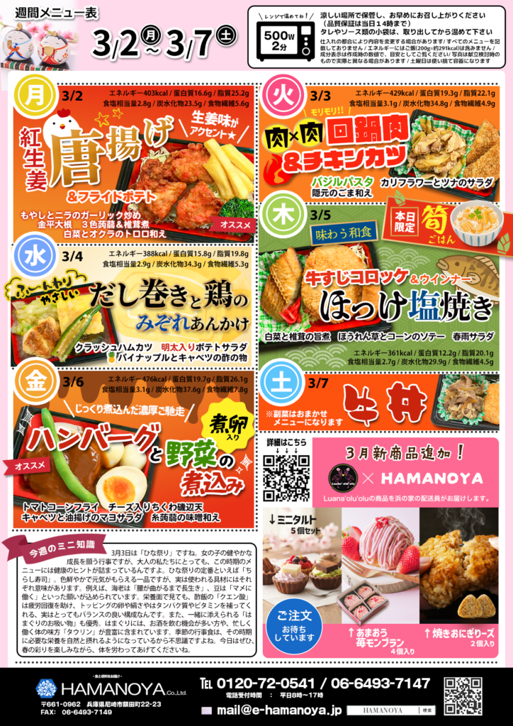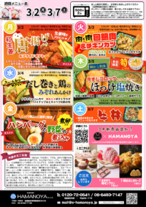 3月2日~3月7日のメニューを掲載しました