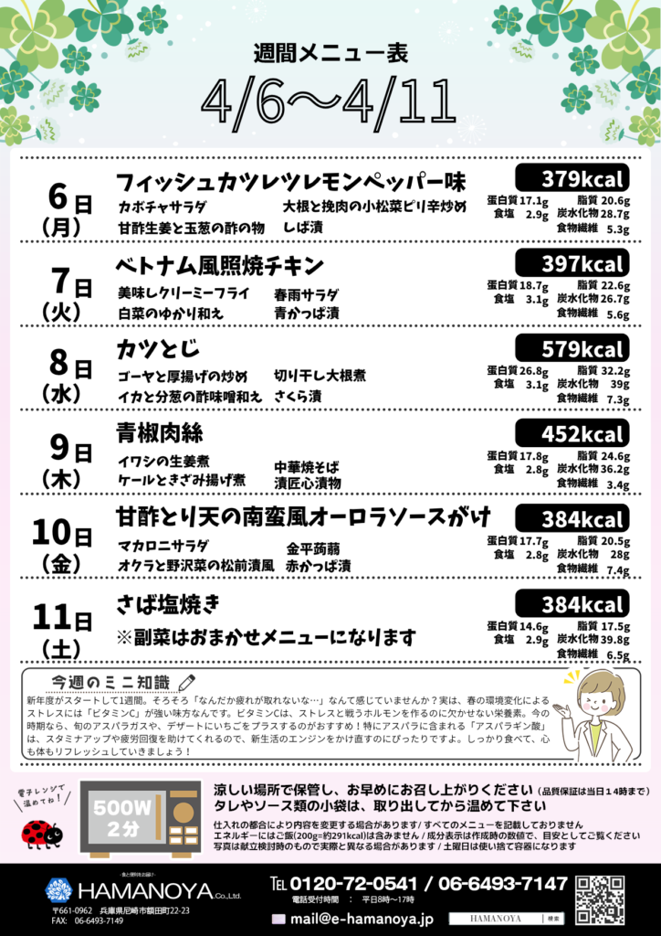 4月6日~4月11日のメニューを掲載しました
